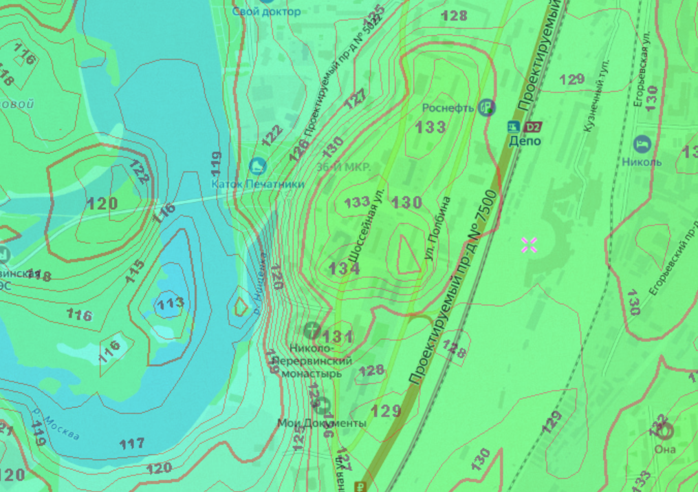 Я начал искать по карте высот - с какого же места можно было увидеть и Коломенское и Перервинский монастырь. Однозначно и сто процентов - это невозможно было сделать из Люблино - высоты не сопоставимые, но более того, между Люблино и Москва-рекой рос высокий лес, в основном сосновый бор, а также были высоты перебивающие предполагаемый вид.