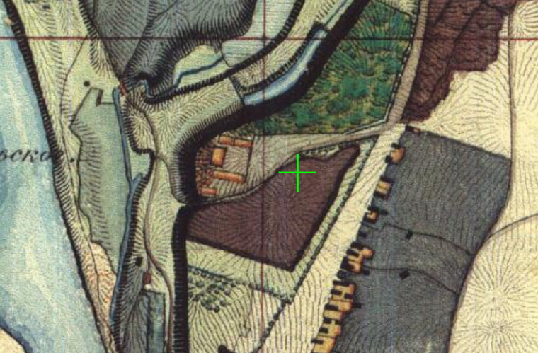Я начал смотреть, что же там располагалось. И Алилуйя. На карте 1838 года в этом месте стоят капитальные строения - то есть не деревянные, а каменные. Вот они на карте. И это горячо. Очень горячо. Они же есть и на более поздних картах, в том числе на период 1866 года.
