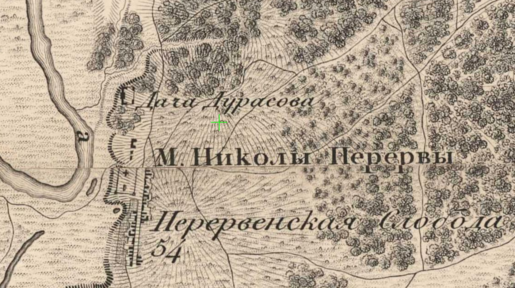 Я начал изучать другие карты... И... И это фантастика, на одной из более ранних карт 1835 года это самое место обозначено, ни много, ни мало, как дача Дурасова. Каменная дача Дурасова!!! Так вот, где собака-то порылась. Оказывается в этих местах была и дача Дурасова, и усадьба Дурасова. Отсюда вся путаница. Отсюда!!!
